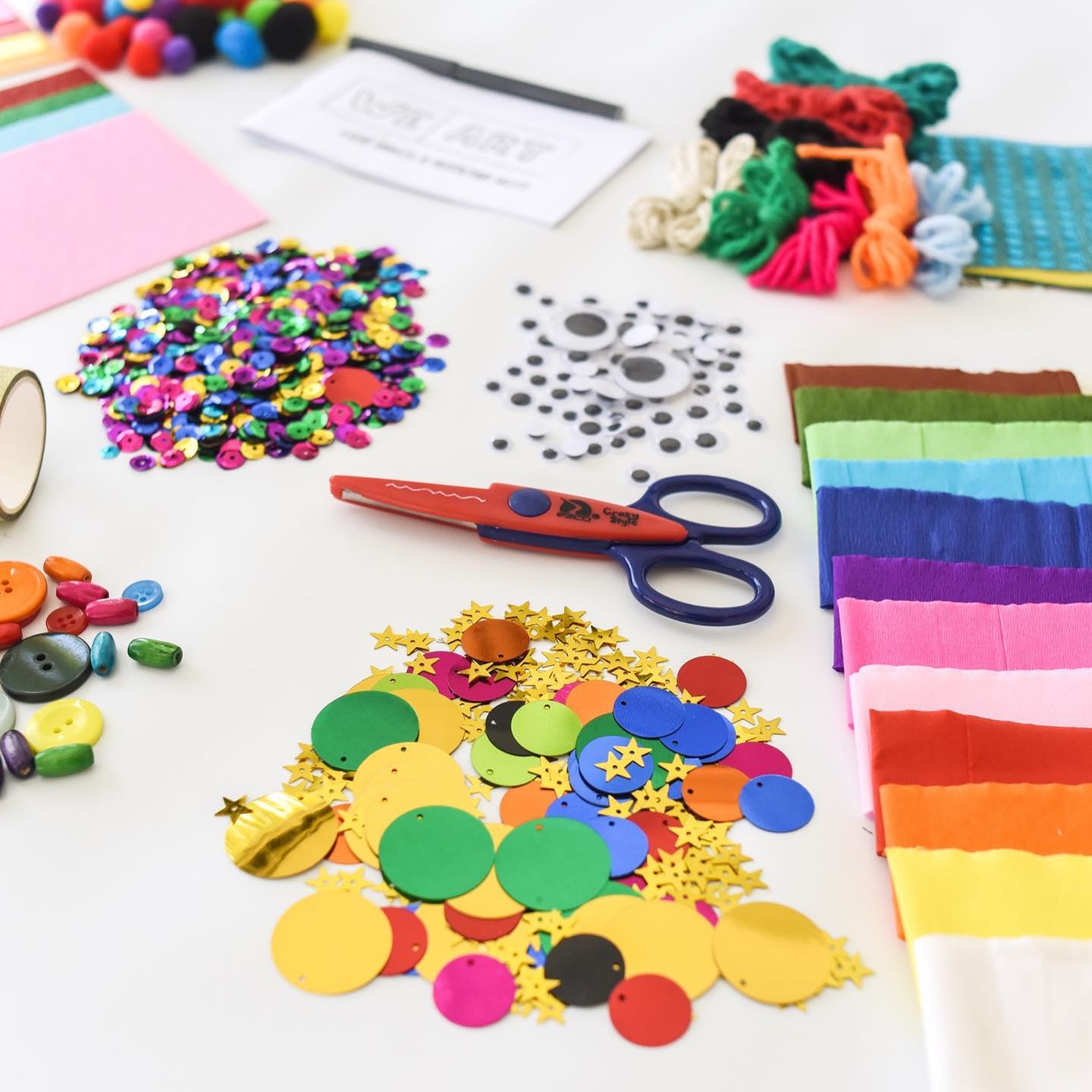 . Cartulinas, Papel crepe, y Papel glacé de distintos colores.