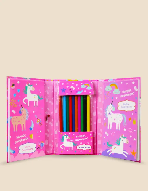 Set para colorear incluye 2 libros con diseños y un set de 10 lapices.